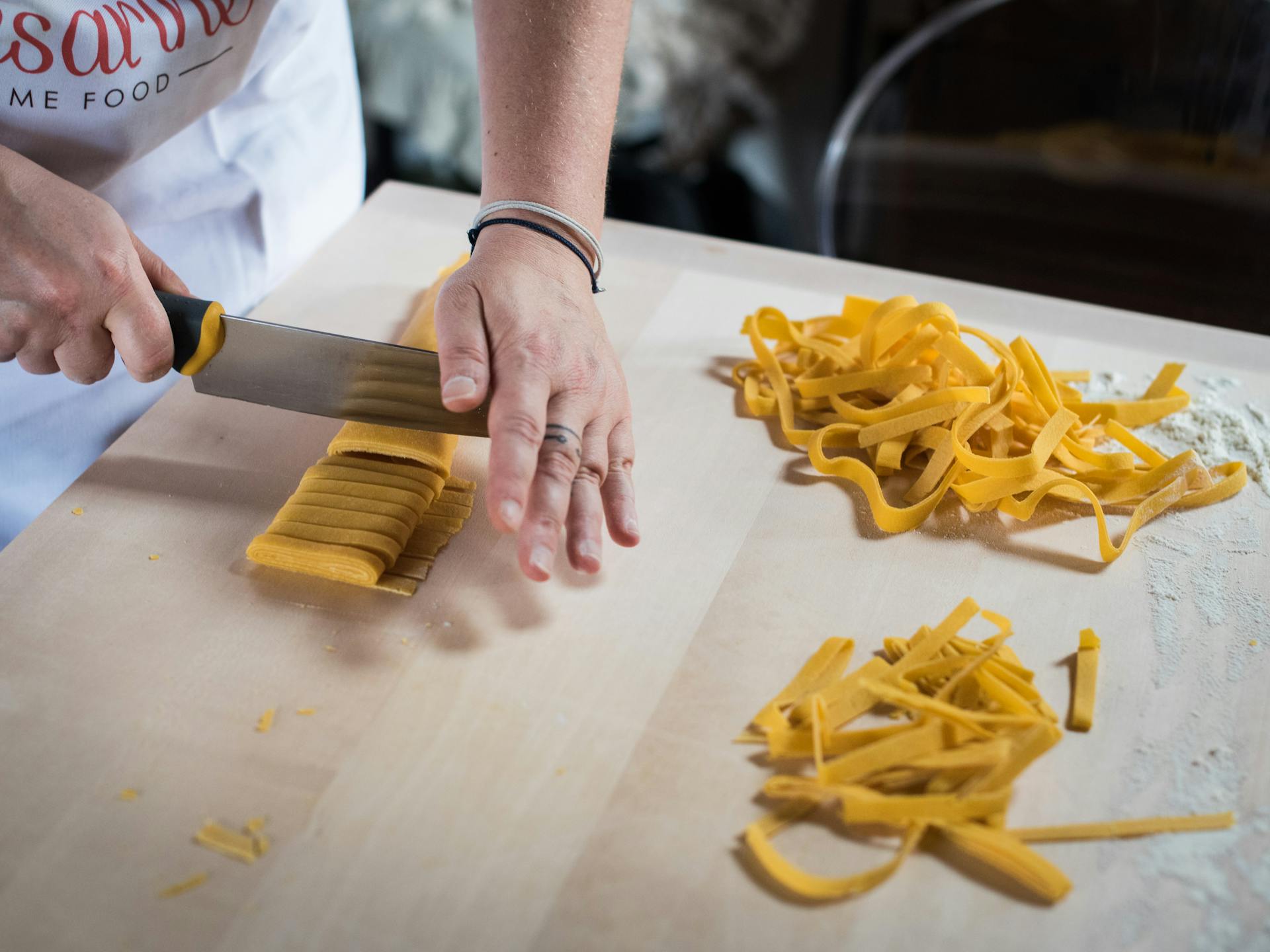 You'll be making fresh egg pasta in varying ribbon shapes, each one designed to hold a different kind of sauce. You'll get to grips with rolling out the silkiest pasta dough with just a few ingredients and a rolling pin. No fancy pasta machine required!