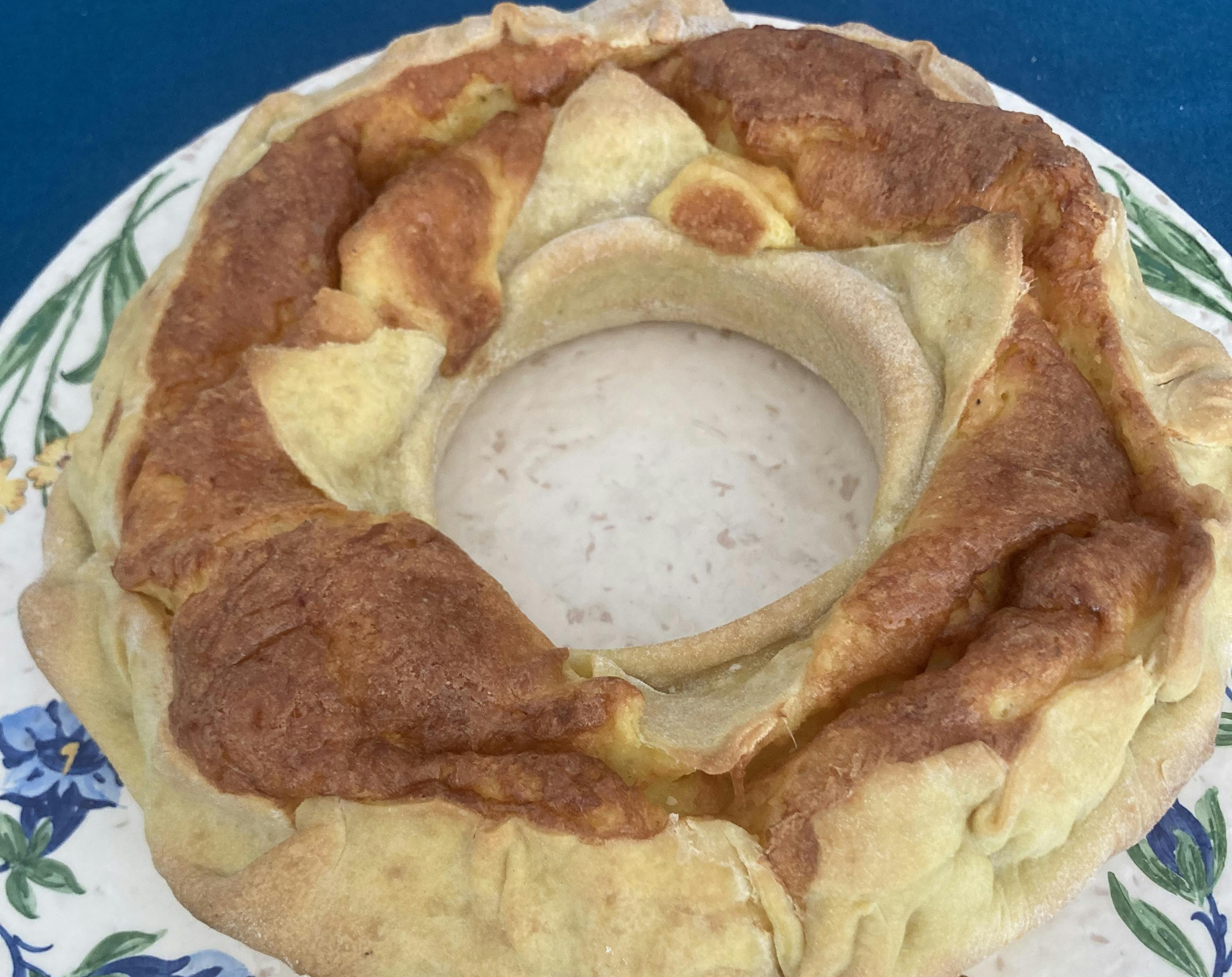 - When cooked, the fiadone, which will have puffed up nicely, should be colorful.