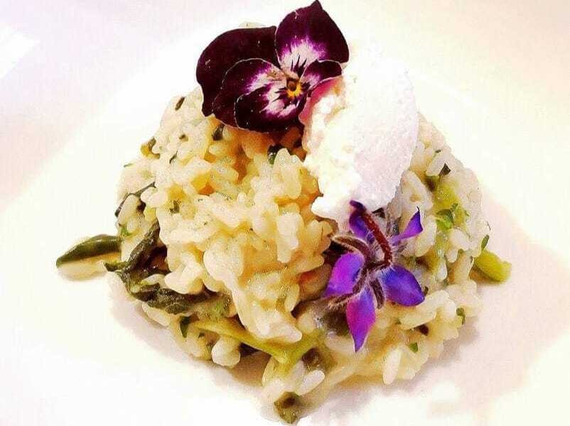 - First course: Risotto with wild herbs and flowers by Cesarina Benedetta
