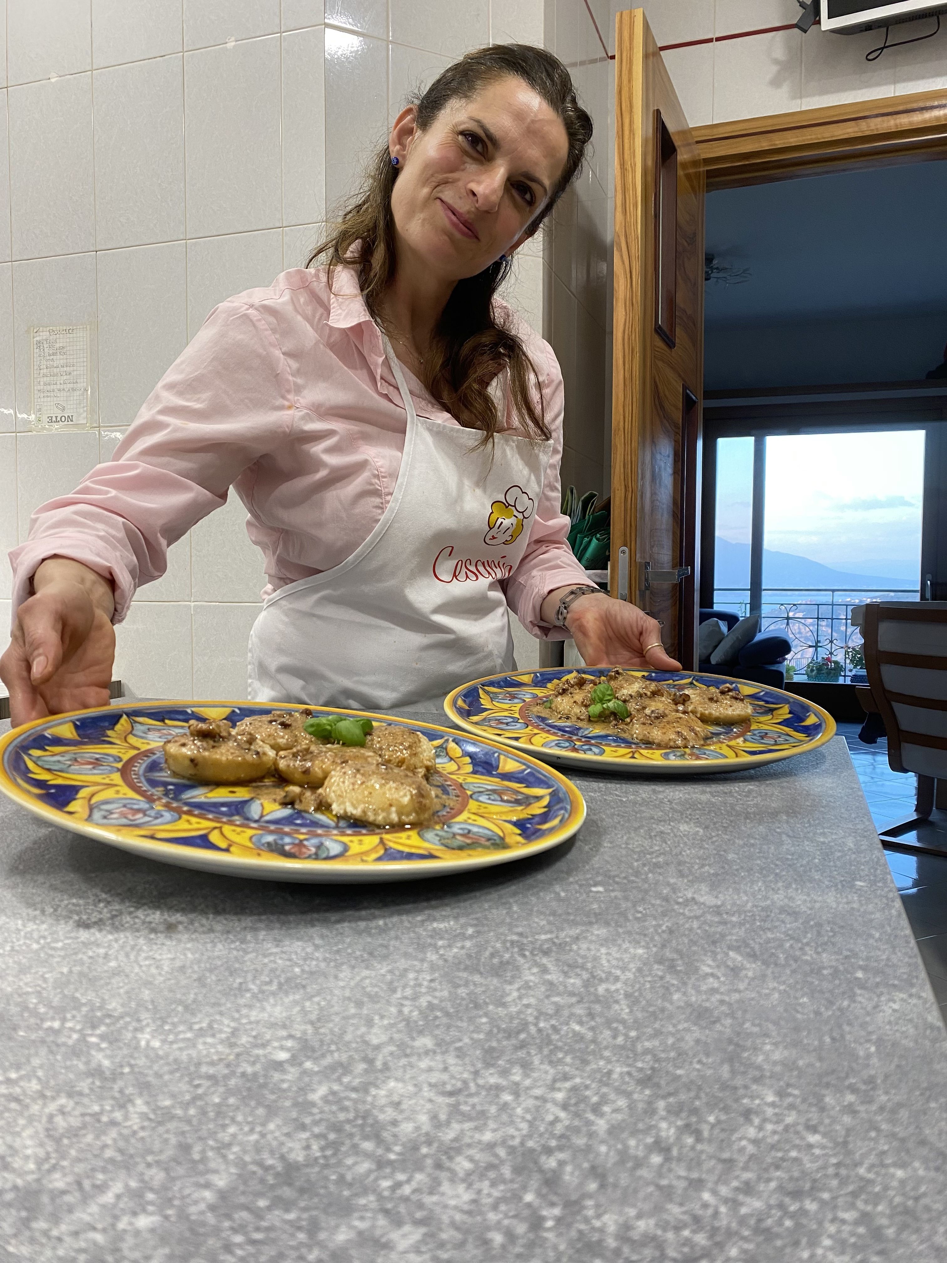 Lunch with friends featuring a view of Mount Vesuvius